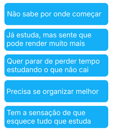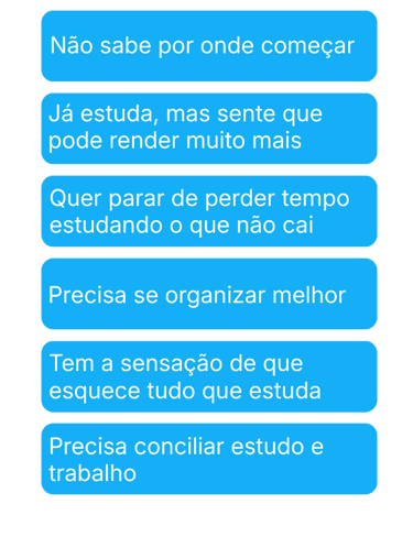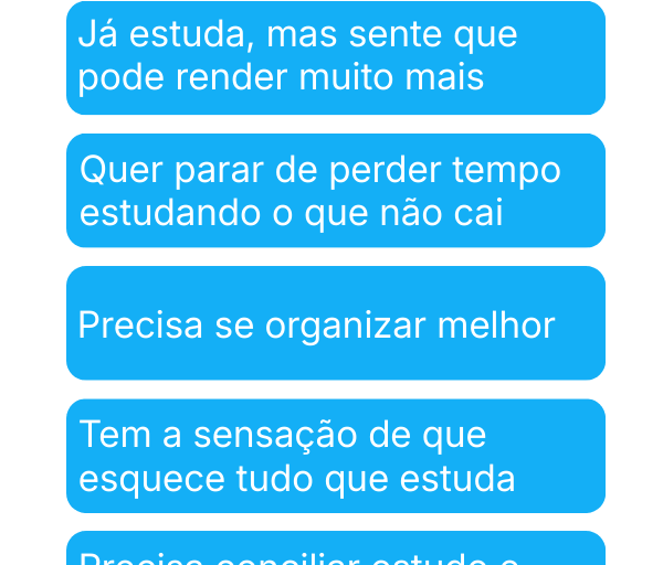 Ela elimina a dúvida do que estudar, facilita a escolha dos conteúdos certos e já entrega os materiais organizados por tema, para você aproveitar melhor cada minuto de estudo