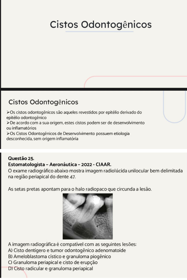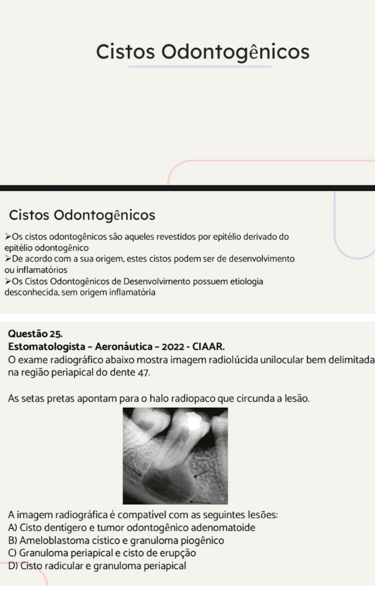 3.Você tem acesso aos materiais certos, com questões (exemplo dos slides de Cistos Odontogênicos)